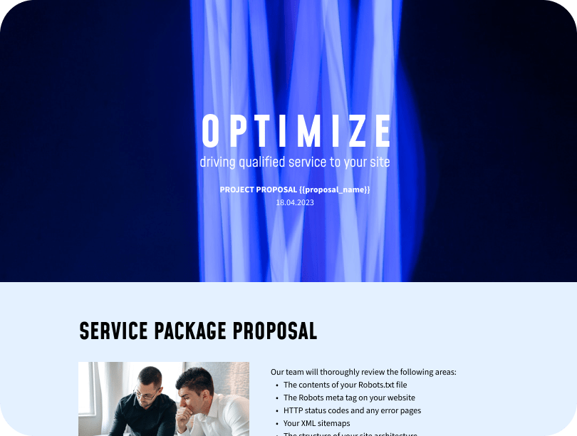 Click the thumbnails below to view samples of pxmo's bespoke proposal templates.